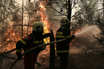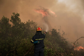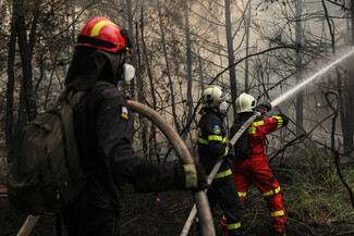 Έλληνες και ξένοι πυροσβέστες επιχειρούν με τις μάνικες/ eurokinissi
